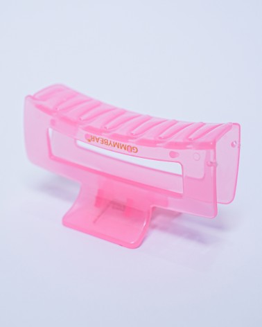 Pince à cheveux transparente rose avec design moderne et grips antidérapants. Maintien ferme et confortable pour tous types de cheveux. Accessoire tendance aux reflets nacrés.