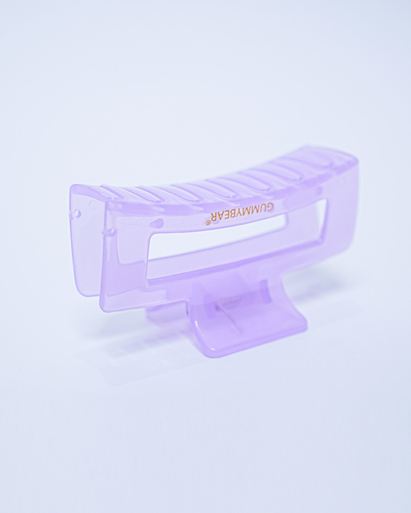 Pince à cheveux transparente mauve avec design moderne et grips antidérapants. Maintien ferme et confortable pour tous types de cheveux. Accessoire tendance aux reflets nacrés.