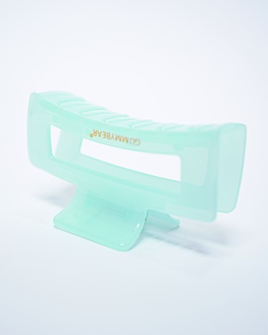 Pince à cheveux transparente vert avec design moderne et grips antidérapants. Maintien ferme et confortable pour tous types de cheveux. Accessoire tendance aux reflets nacrés.